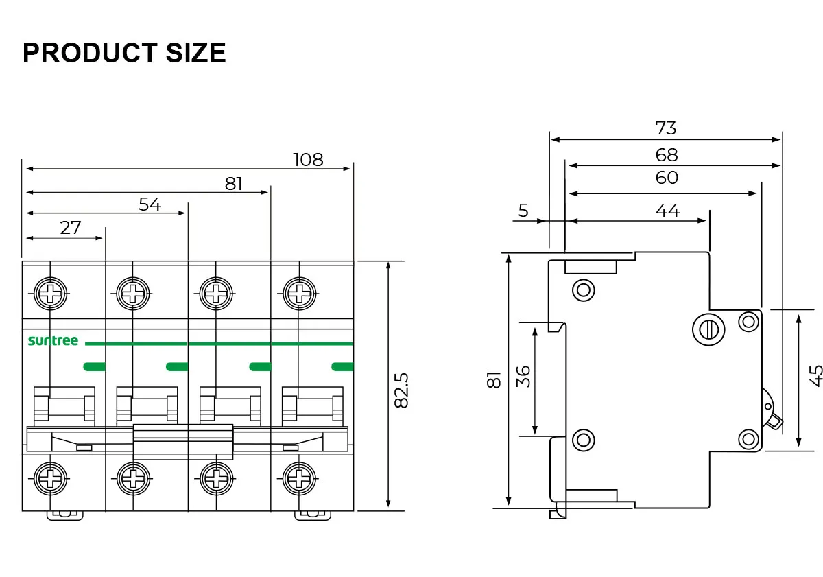 Single-pole: up to 230V;2/3/4-pole: up to 400V