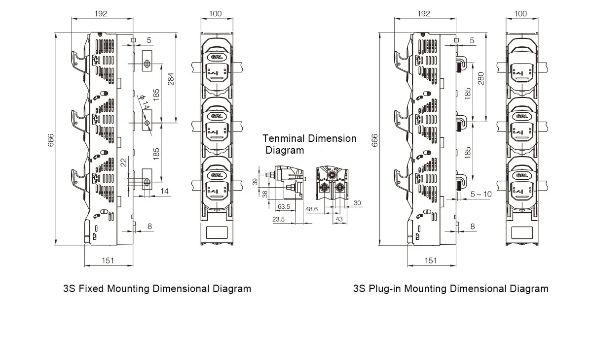 Optimized fuse core installation module Additional heat dissipation grooves Multiple wiring options available Integrated current transformer design Support for various functional modules Unique identification for clear differentiation