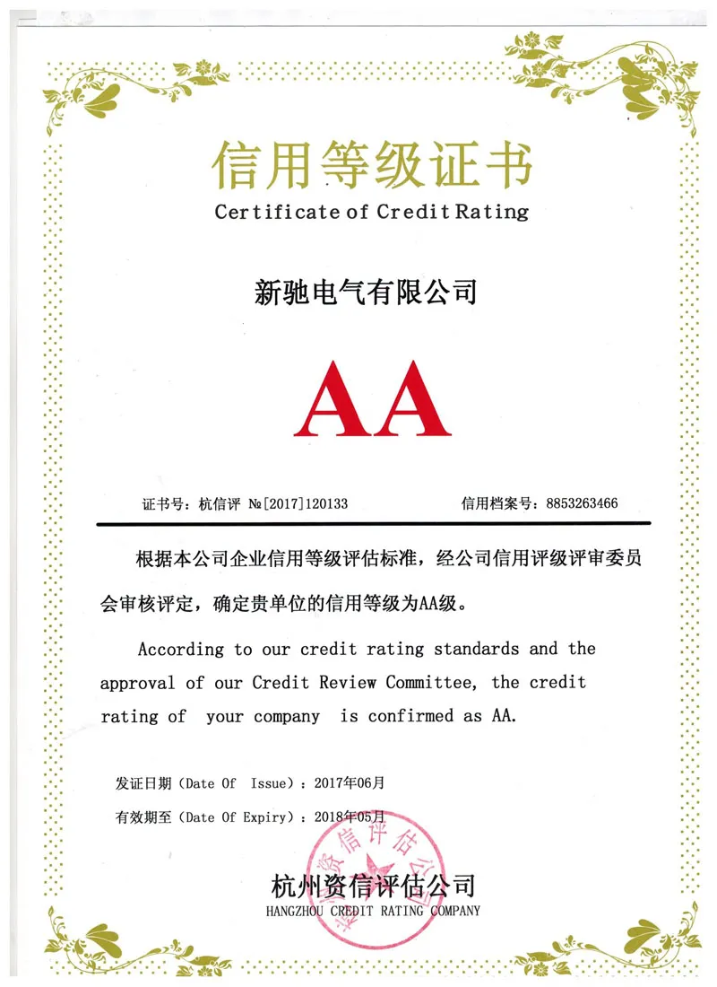 Recently, by the Hangzhou credit rating company for the enterprise credit evaluation work successfully completed,Xinchi Group by virtue of good credit management system and credit construction,was awarded "AA grade credit enterprise".