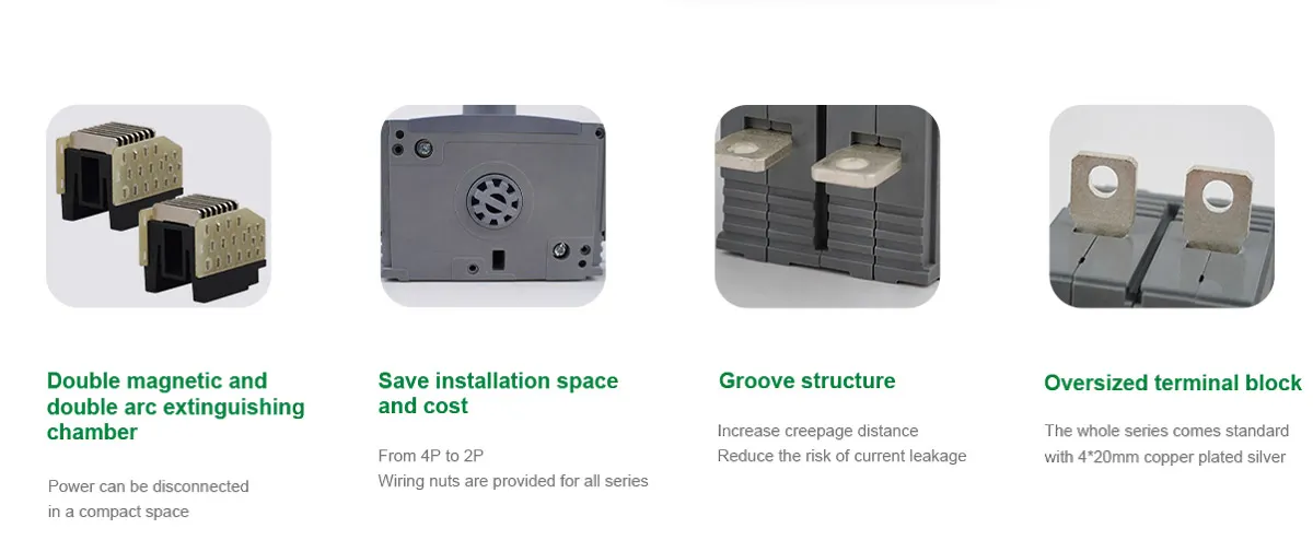 • All the contact materials are copper alloy plated with silver, and possess two separation contact surfaces.