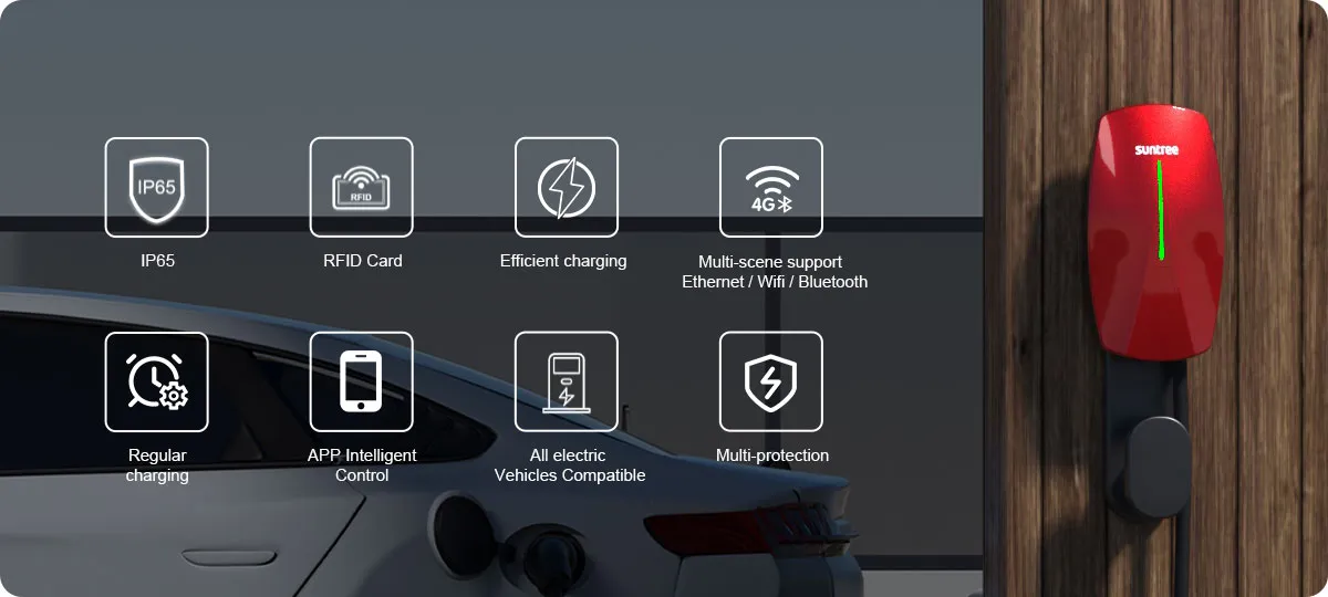 • The Type 2(IEC 62196-2) and GB/T charging connector makes highly flexible and compatible with all electric vehicles.