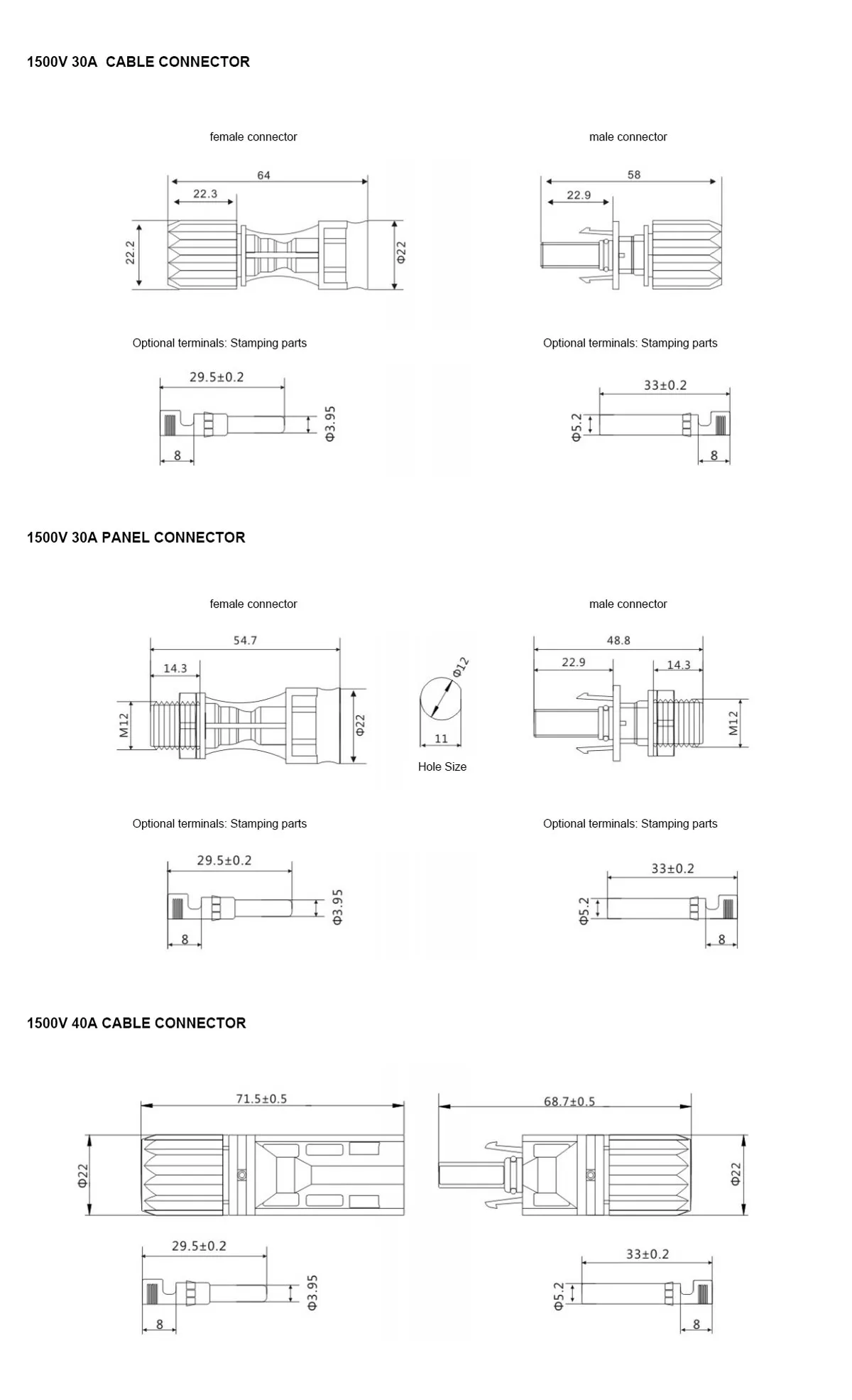 | Suitable cable | 2.5mm²~6mm² / 14AWG~10AWG | 2.5mm²~6mm² / 14AWG~10AWG | 2.5mm²~10mm² / 14AWG~8AWG |