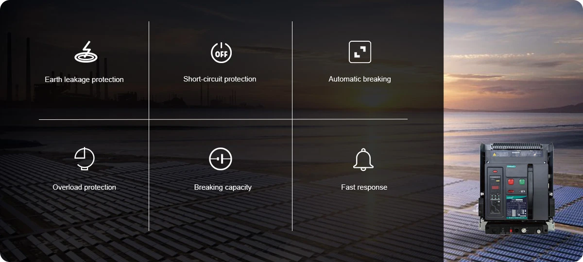• The SQ8 Series Universal Circuit Breaker suits AC power systems in conventional/intelligent settings and special environments (low temp -40℃, plateau, hot-humid with 3-proof), supports 50/60Hz for emergency/continuous power.
