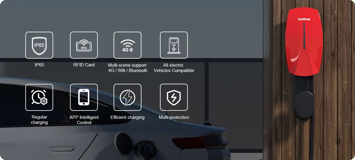• The Type 2(IEC 62196-2) and GB/T charging connector makes highly flexible and compatible with all electric vehicles.